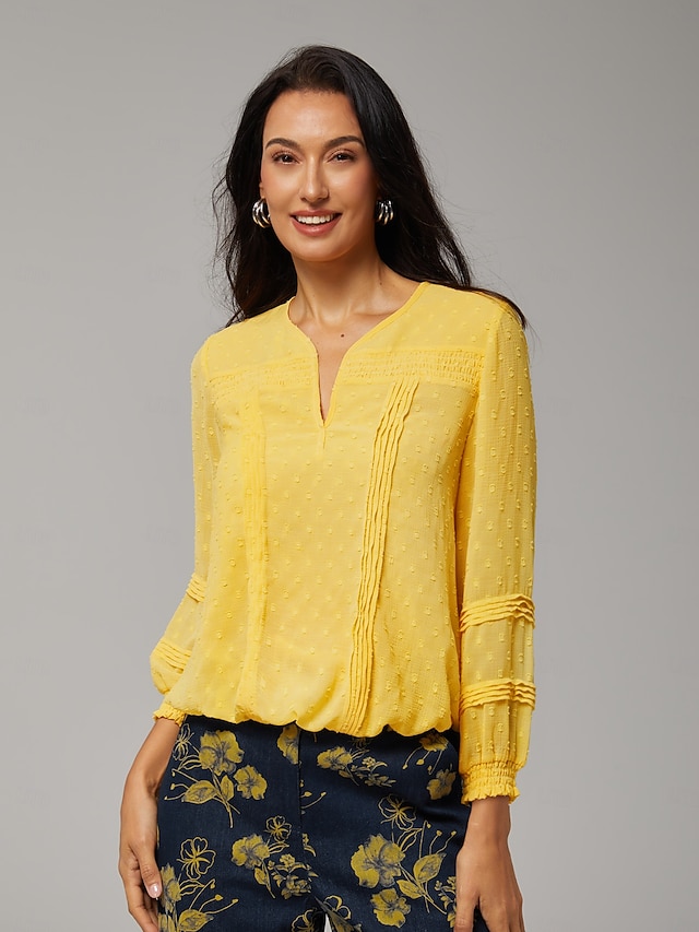 Tejido:Gasa,Sexo:Mujer,Ocasión:Casual,Diseño:Floral,Flores,Estilo:Elegante,Escote:Ronda,Escote en Pico,Longitud de la Manga:Manga Larga,3/4 de Mangas,Elasticidad:Rígido,Delicado:Lavado a Máquina,Temporada:Verano,Primavera verano,Primavera,