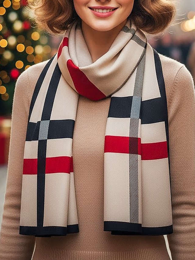 Bufanda a cuadros de poliéster para mujer, acogedora y elegante para el invierno, regalo de Navidad perfecto en varios colores.#15212701