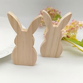 4 Paquete Adornos de Conejo de Pascua Conejos de Madera Natural Aptos para Decoraciones de Pascua