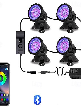 Foco para acuario con botón de control remoto y aplicación Bluetooth, IP68, luz sumergible para exteriores, luz para piscina