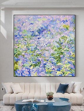 pintura al óleo de flores original sobre lienzo pintura floral moderna arte abstracto verde púrpura sala de estar decoración del hogar arte de pared con textura grande