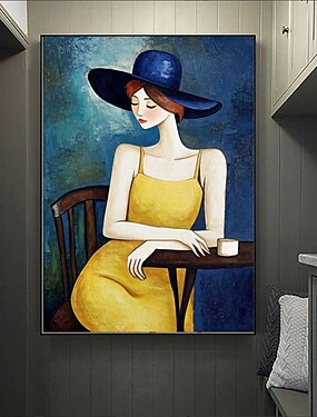 Pintura al óleo abstracta y colorida hecha a mano de una mujer, arte abstracto de hermanas vaqueras, arte de pared retro figurativo sobre lienzo, arte de figura original, decoración de pared moderna