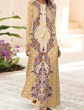 Mujer vestido largo vestido largo Vestido bohemio Elegante Vintage Moda Diario Exterior Playa Ajuste regular Graphic Flor Manga Larga Cuello Barco Azul Piscina Negro Amarillo Rosa Primavera Otoño