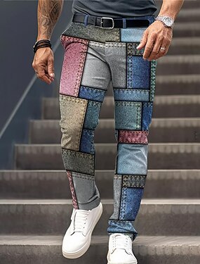 Hombre Plaid Bloque de color Retazos pantalones de traje Media cintura Formal Casual Impresión 3D Verano Primavera Otoño invierno Azul Piscina