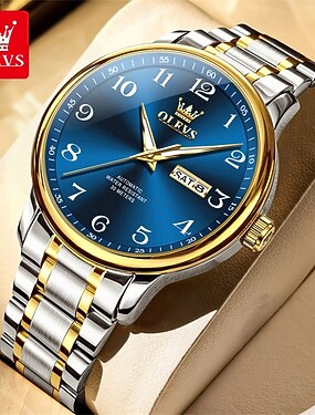 Reloj de negocios para hombre New Olevs con calendario luminoso, visualización semanal, movimiento mecánico totalmente automático, reloj digital informal y moderno, resistente al agua, reloj de