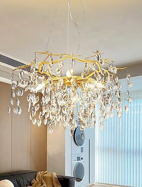 Lámparas LED de lujo moderno, 42/50/60/80 cm 6/6/12/14 luces de cristal dorado para interiores del hogar cocina dormitorio arte del hierro lámpara de rama de árbol lámpara creativa luz blanca cálida 110-240v