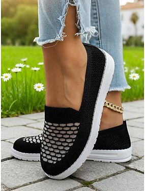 Zapatos para caminar sin cordones Flyknit transpirables de corte ancho para mujer, zapatos cómodos de malla livianos para uso diario, viajes, compras y caminatas largas.
