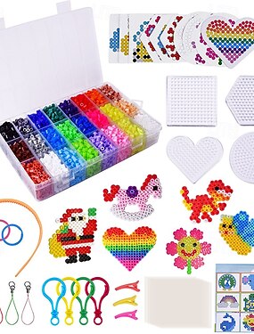 Kit de 6300 piezas de Perlas Fuse de 5 mm 24 Colores Suministros de Artes y Manualidades para Niños en Casa Set de Juguetes Decoraciones Artísticas para la Habitación Regalos para Niñas y Niños de 5