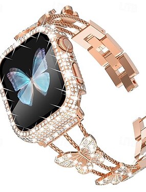 Pulsera de joyería Compatible con Apple Watch Correa 38mm 40mm 41mm 42mm 44mm 45mm 49mm con caso Mujer Diamante brillante Acero Inoxidable Diamantes Sintéticos correa de repuesto para iwatch Ultra 2
