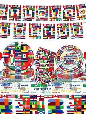 Decoraciones para fiestas de fútbol, juego de suministros para fiestas de cumpleaños de fútbol: incluye platos, vasos, servilletas, mantel y pancarta. &Adornos para tartas, kit de vajilla para fiesta