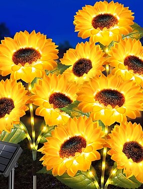 Luces solares de exterior impermeables 3 en 1 con forma de girasol de 9 cabezas, lámparas LED decorativas para jardín, patio, césped, villa: iluminación ambiental para vacaciones, bodas y fiestas.