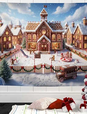 Tapiz navideño de casita nevada: colgante de pared de paisaje invernal mágico, manta decorativa festiva para el hogar, dormitorio, sala de estar, decoración navideña