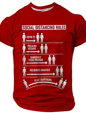 Reglas de distanciamiento social para hombres covid 19 veganos amigos tóxicos terraplanistas camiseta divertida sarcástica cuello redondo gráfico corte regular ropa casual de diseñador prendas s m l