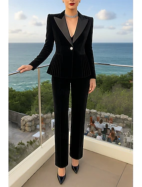 Mujer Trajes de 2 piezas Formal Invitado a la boda Satén Terciopelo Elegante Minimalista Manga Larga Hasta el Tobillo Solapa pico Botonadura Simple