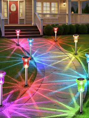 Luces solares para exteriores, luces solares para caminos exteriores impermeables, iluminación con estacas de acero inoxidable para jardín, patio, sendero, entrada de vehículos, patio, césped,