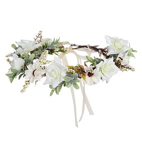 corona de flores de hoja tocado de guirnalda - guirnalda de pelo hecha a mano corona floral diademas de flores ajustables para boda nupcial festival fiesta flor hojas corona (blanco crema)
