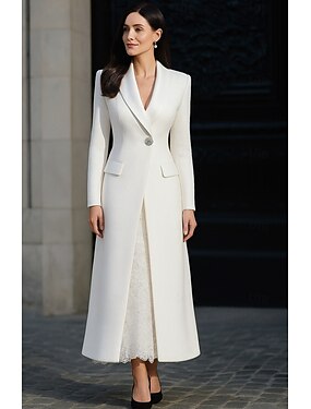 Mujer Vestido de esmoquin Corte A Funda Columna Boda Formal Invitado a la boda Satén Tejido elástico en 4 direcciones Elegante Esmoquin Manga Larga Hasta el Suelo Hasta el Tobillo Solapa Redonda