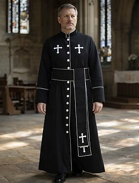 Retro Antiguo Religioso Medieval Hasta el Suelo Túnica Larga Sacerdote Escote Chino Disfraz Unisexo Víspera de Todos los Santos Carnaval Mascarada Feria del Renacimiento LARP Adultos Chaqueta Todas