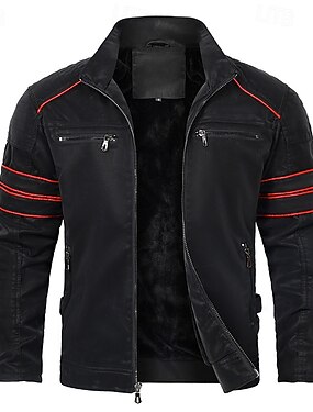 Hombre Chaqueta de cuero sintético Chaqueta de lana Chaqueta de motociclista Chaqueta de moto Vacaciones Diario Resistente al Viento Mantiene abrigado Retazos Bolsillo Otoño Invierno Rayas Moda