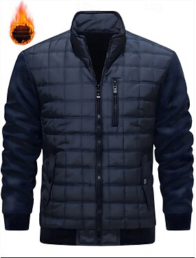 Hombre Abrigo de invierno Chaqueta acolchada Bolsillo Poliéster Vacaciones Ropa Cotidiana Cita Regular Moda Casual Cómodo Mantiene abrigado Invierno Color sólido/liso Vino Negro Azul Marino Azul Real