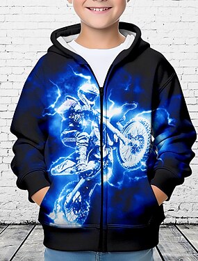 niños 3d gráfico sudadera con capucha abrigo prendas de vestir exteriores manga larga estampado 3d otoño invierno moda ropa de calle fresco poliéster niños 3-12 años cremallera con capucha al aire
