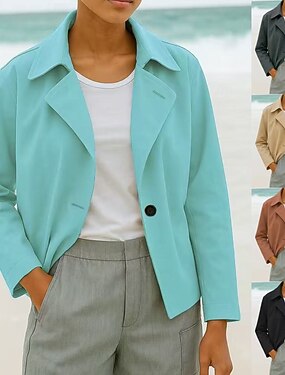 Mujer chaqueta Cómodo Transpirable Bolsillo Casual Plano Casual Oficina Calle Ropa Cotidiana Botonadura Simple Regular Cuello Vuelto Ajuste regular Manga Larga Ropa de calle Negro Verde Trébol Caqui