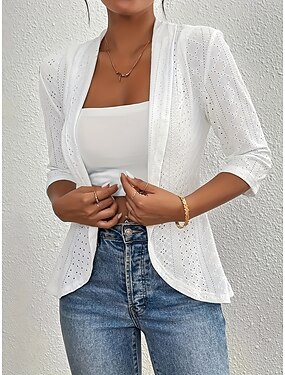 Mujer chaqueta Cómodo Transpirable Cortado Elegante Moda Plano Trabajo Diario Regular Cuello Vuelto Ajuste regular Manga 3/4 Ropa de calle Blanco Primavera Otoño