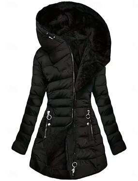 Mujer Chaqueta casual Chaqueta con capucha Impermeable Mantiene abrigado Bolsillo Botones Forrado con Lana Casual Plano Vacaciones Calle Casual Ropa Cotidiana Botonadura Simple Regular Cuello Vuelto