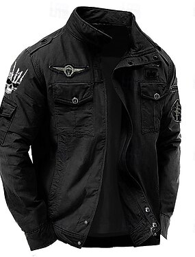Hombre Cruz Chaqueta tipo cargo Cortavientos Chaqueta militar Práctico Casual Exterior Acampada y Senderismo Bordado Bolsillos laterales Cremallera frontal Otoño Invierno Escote Chino Manga Larga