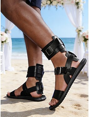 Sandalias de gladiador marrones para hombre: correas elegantes y ajustables, ajuste cómodo para bodas, playa y actividades al aire libre de verano.