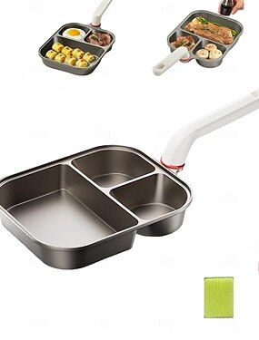 Sartén antiadherente de aleación de titanio 3 en 1 con mango elevado anti-escaldaduras, raspador y cepillo de aceite, sartén para desayuno, olla para freír hamburguesas, sartén para desayuno de varias