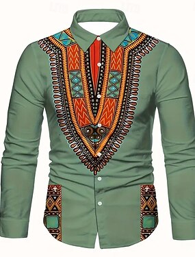 Hombre Ética / Africana Kente Camisa Abotonar la camisa Camisa de vestir informal Manga Larga retro de la vendimia Vacaciones Diario Ropa de calle Verano Primavera Cuello Vuelto Impresión 3D camisas