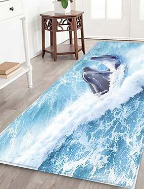Alfombra de pasillo con estampado de agua de mar azul, tela de franela estampada, decoración del hogar, alfombra de entrada a prueba de polvo, absorbente, suave, cojín para baño