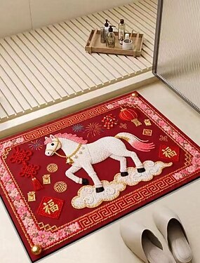 Alfombra de baño roja para el Año Nuevo Lunar Chino, Año del Caballo, suave, de diatomita, absorbente, antideslizante, para ducha e inodoro