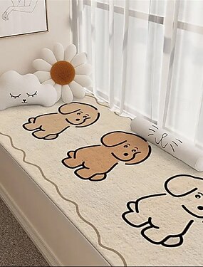 Alfombra de pasillo con diseño de cachorro adorable de dibujos animados, suave, de imitación de cachemira, gruesa y acogedora, ideal para sentarse junto a la ventana, la cama o como alfombra para
