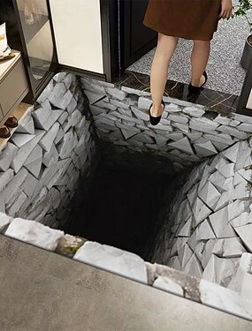 Alfombra de bienvenida con ilusión óptica 3D trampa visual para piso antideslizante para entrada baño cocina interior exterior tierra diatomácea rápida de secado y absorbente 20 x 31 pulgadas