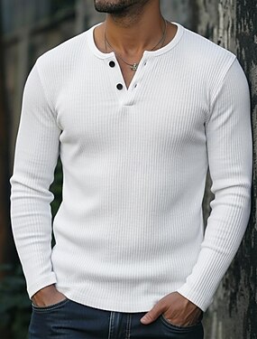Hombre Camiseta Camiseta de punto acanalado Camiseta superior Camisa de manga larga Manga Larga Henley Primavera Otoño Invierno Plano Tira de pozo Moda Design Básico Tejido en Punto Vacaciones Calle