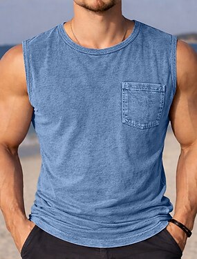 Hombre Camiseta sin mangas Top Camisa vaquera Camisa desteñida con ácido Sin Mangas Cuello Barco Verano Primavera Plano Moda Design Básico Con Capucha Casual Vacaciones Calle Negro Verde Claro Rosa