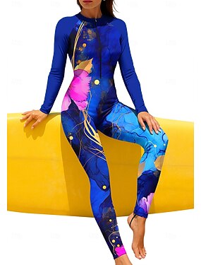 Mujer Regular Camiseta Protección Solar Surf Camiseta de protección solar de cuerpo completo Traje de baño Flores Tropical Bloqueo de color con sujetador incorporado Cremallera delantera Protección