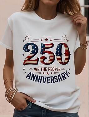 día de la independencia americana Chica 3D Bandera Camiseta Manga Corta Verano Primavera Moda Básico Niños 4-12 años Cuello Barco Casual Diario Exterior Ajuste regular