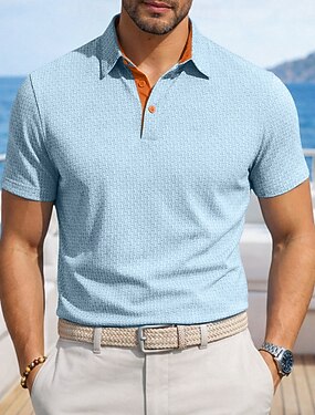Hombre Con Texturas Polo de punto gofre Casual Negocio Clásico Manga Corta Moda Moderno Color sólido Con Texturas Secado rápido Botones Verano Primavera Ajuste regular Azul Piscina Negro Blanco Azul