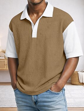 Hombre Camisetas polo con diseño de gofre Camiseta de golf Casual Cuello Vuelto Manga Corta Moda Cómodo Color sólido Bloque de Color Primavera verano Verano Primavera Ajuste regular Azul Piscina