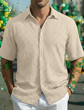 Hombre Camisa Camisa de lino Camisa de verano Camisa de playa Abotonar la camisa Plantas Festivos Ropa Cotidiana Azul Piscina Rosa Verde Trébol Caqui Manga Corta Cuello Vuelto Verano Ropa Bolsillo