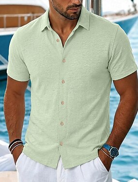Hombre Camisa Camisa de lino Camisa de verano Camisa de playa camisa hawaiana Color sólido Casual Diario Negro Blanco Verde Claro Rosa Manga Corta Cuello Primavera verano Verano Ropa Puro