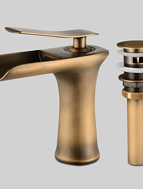 juego de grifos de latón de bronce antiguo, grifos de baño de un solo orificio montados en cubierta de bronce antiguo de cascada con interruptor de agua caliente y fría y desagüe
