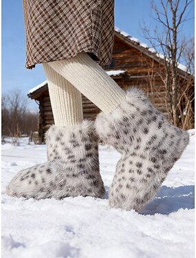 Botas de nieve para mujer con estampado de leopardo y forro de piel sintética: botines de invierno acogedores con suave forro de piel sintética, elegantes y cálidos para el clima frío y actividades al