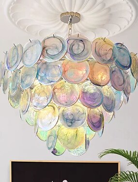 Lámpara de araña moderna con forma de concha marina, de cristal azul, estilo mediados de siglo, con cadena ajustable, ideal para salón, comedor, dormitorio o isla de cocina.