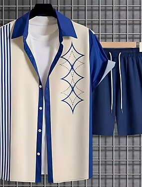 Hombre Geométrico Línea Polo Manga Corta Camisas de polo Camisas con cuello Informal de negocios Exterior Ropa Deportiva Ropa Cotidiana Impresión 3D Botones Verano Azul Piscina Negro 1 Negro