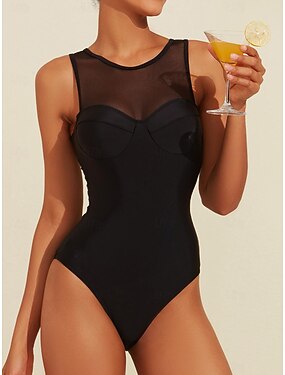 Mujer Bañadores Una pieza Traje de baño Color sólido/liso Negro Ronda Trajes de baño Estilo playero