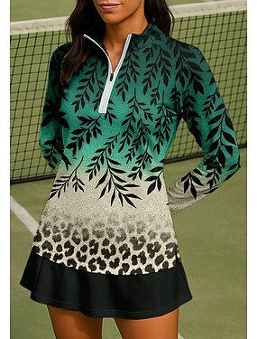 Mujer Leopardo Degradado Flores Camisas Camisa deportiva Camisas de polo Camiseta de tenis Manga Larga Cremallera Floral UPF50+ Resistente a los rayos UV Alta elasticidad Dispersor de humedad